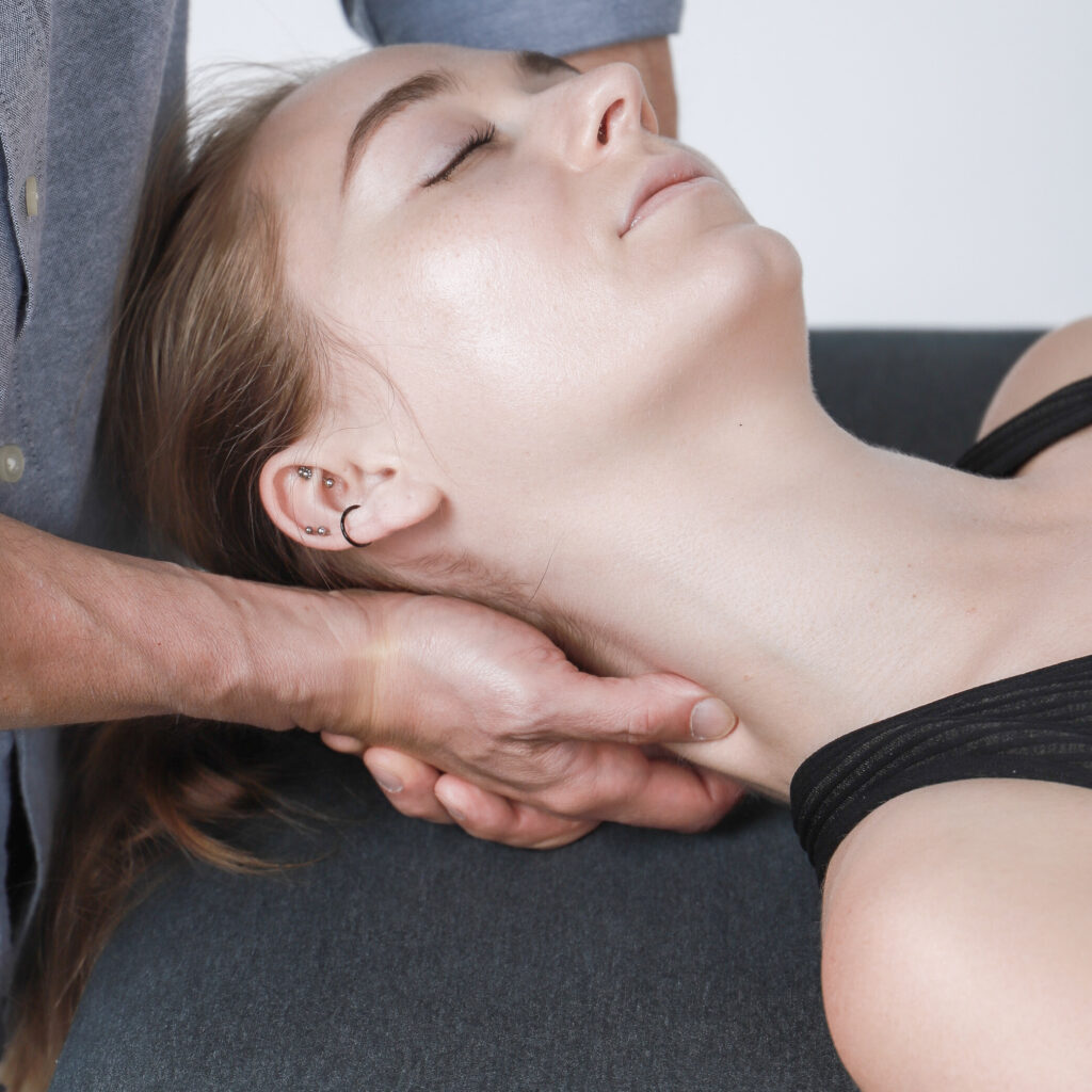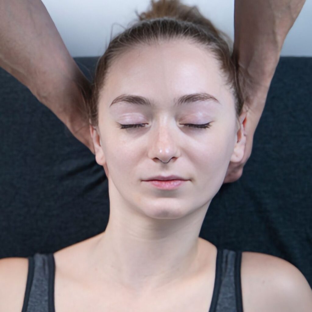 Massage therapists can utilize a manual version of belly dancer head slides by applying cervical translation as part of their neck massage (Above). Cervical translation improves joint function, promotes CSF circulation, balances muscles, and mobilizes the cervical nerve roots. The rhythmic rocking movements of cervical translation promote relaxation, reducing protective muscle guarding and allowing the vertebrae to regain optimal alignment naturally.